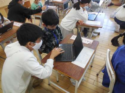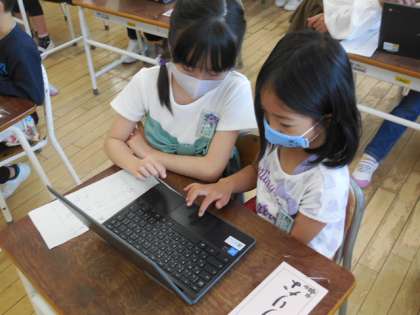 6年生は、1年生がこれから使用するクロムブックの設定をお手伝いしました。また、クラスルームを立ち上げ、生活調査アンケートの入力も行いました。1年生に優しく話しかけ、パソコンの使い方を教える姿がとてもすてきでした。