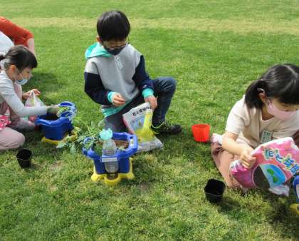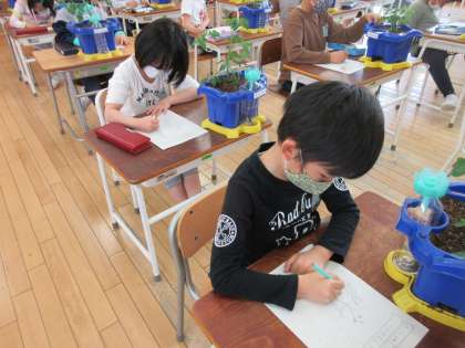 生活科の時間に野菜を植えました。「大きくなってね。」「おいしく育つといいな。」とこれからの成長を楽しみにしている子供たちでした。