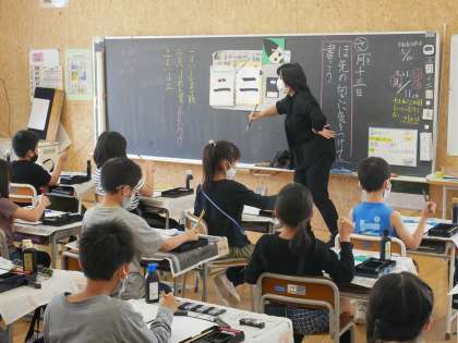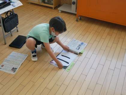 今日は毛筆で漢数字の「二」を練習しました。筆の穂先を整え、書き始めの筆の入れ方や止め方などを勉強しました。準備や片付けも少しずつ早くなり、毛筆の学習に慣れ始めました。
