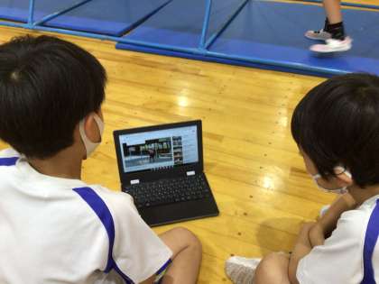 今日はクロームブックを使って、技のポイントを動画で確認しました。確認した後、練習に取り組み、自分の力にしていたようです。