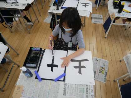 今週から新たに縦画の勉強を始めました。横画と同じように始筆と終筆を意識しながら漢字の「土」という字を書きました。ポイントを意識しながら、心を落ち着かせて書いています。