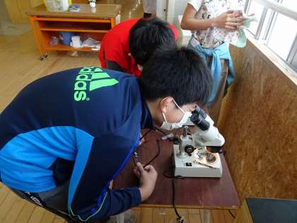 理科の学習では、人体と魚の臓器の違いを見てみようと、顕微鏡で観察しました。