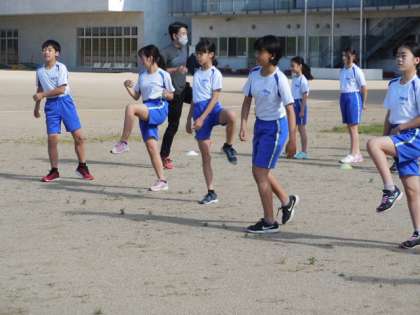 今月12日に行われる陸上大会に向けて、本格的に練習が始まりました。選手達は張り切っています。最初のウォーミングアップにも余念がありません。次の日には、ほとんどの子供達が筋肉痛になったようです。