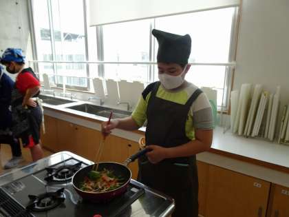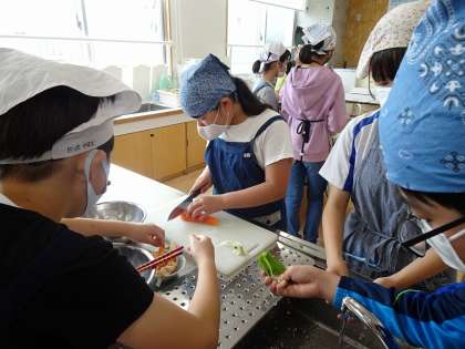 3組の様子です。切り方や火加減等に気を付けながら野菜をいためました。