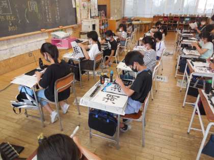 3つの部分を組み合わせた漢字「湖」を練習しました。部分のバランスや大きさを考えながら、丁寧に書くことができました。