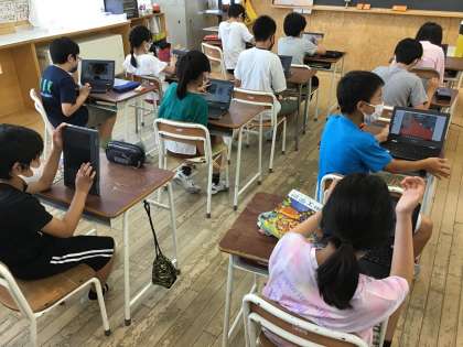 図画工作科では、校内の見慣れた何気ない場所でも、ちょっと見方を変えると違う風景に見えてくるイメージを活かして作品を作ります。