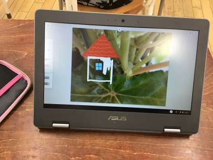 校内で見つけた面白い場所をChromebookで撮影して、その写真に書き込みをして作品のアイディアを広げています。