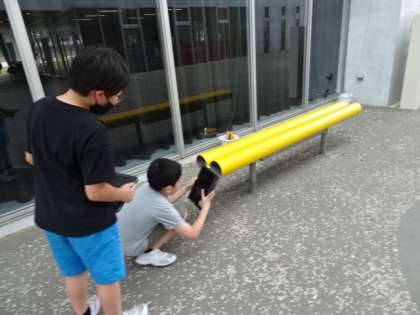 図画工作科で、クロームブックをつかって、写真を撮り、そこに絵を描き加えて作品をつくる学習をしています。普段見慣れた景色も見方を変えるとおもしろい発見がたくさんあります。