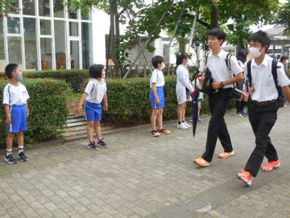 小・中・高合同のあいさつ運動が始まりました。初日の今日は、低学年の子供たちが参加しました。朝から元気の良いあいさつを響かせることができました。