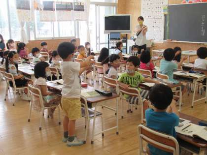 国語の学習「くちばし」では、教材文や挿絵を手がかりにくちばしのひみつを探っています。ペアの友達と手を使ってくちばしの形を表現しながらとりのくちばしのひみつを見付けたり、動画を見ながらくちばしの不思議を話し合ったりして学習を進めています。