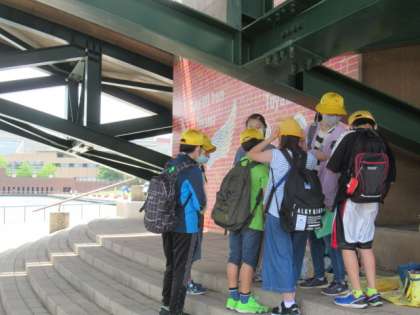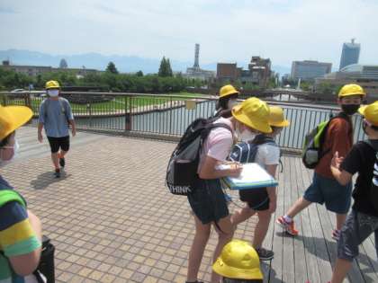 環水公園に到着し、ウォークラリーがスタートしました。活動リーダーが考えたクイズを、各班の子供たちは楽しく解き進めました。