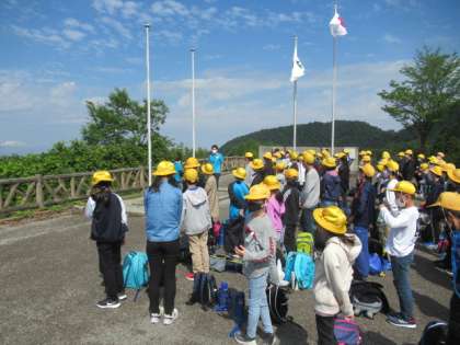 自然の家に到着しました。入所式の様子です。空がとってもきれいです。