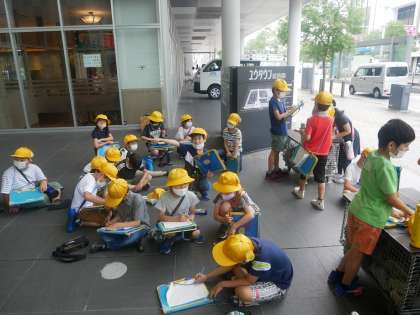 総曲輪通り商店街を抜けて富山市立図書館、ガラス美術館を見て、ユウタウンに向かいました。ユウタウンにはどんなお店があるのか、看板を参考にしてみたり、お店の様子を外からのぞいたりして観察しました。