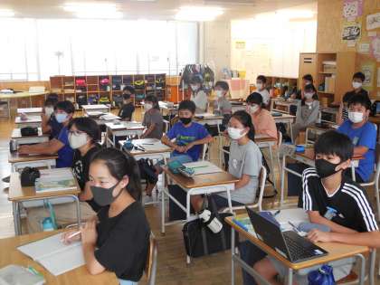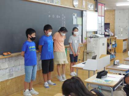 環境問題について考え、学校でできる取り組みをグループで提案文にしました。今日は、グループの発表を行いました。