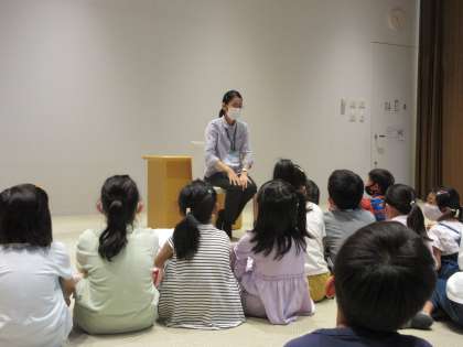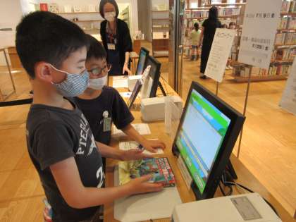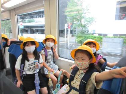 セントラムに乗って、富山市立図書館へ行きました。司書の方から、図書館のひみつやマナーを聞いて、読み聞かせをしてもらった後、好きな本を選んで借りました。学校よりもたくさんの本に囲まれて、とても楽しそうな子供達でした。