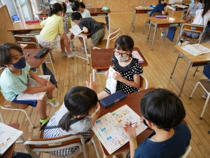 I like〜.I don't like〜.の表現を使って、自分の好きもの、好きじゃないものについて自己紹介をしました。グループの友達にやクラスのみんなに、英語を使って進んで自分のことを伝えようとしていました。