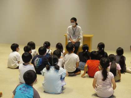 図書館の使い方や借り方を教えてもらいました。読み聞かせでは、みんな楽しそうに笑いながら落ち着いて話を聞いていました。