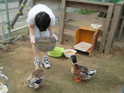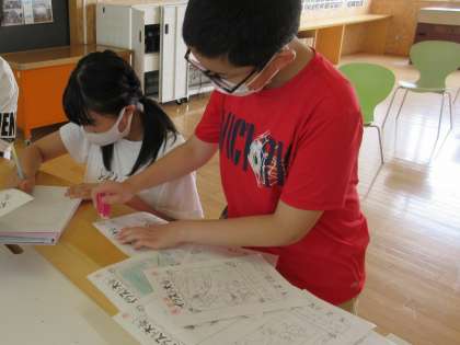 飼育栽培委員会は生きものや植物のお世話を毎日欠かさず行っています。今月には、芝園っ子たちが生きものにもっと興味をもつようにと、イラスト大会を企画しました。集まった作品を審査して放送で発表するなど、活動を工夫しています。