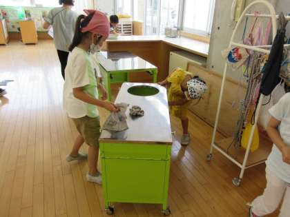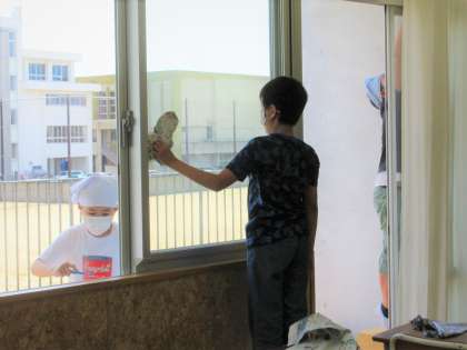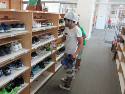 1学期の間みんなで使った学校を、今日はピカピカに掃除しました。下足箱や教室の窓、給食の配膳台など、日頃手の届かないような所も時間をかけて丁寧に磨きました。気持ちよく夏休みが迎えられそうです。