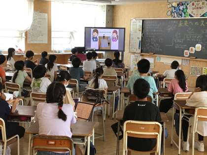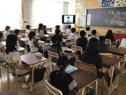 テレビの前で姿勢を正し、しっかりと校長先生のお話を聞きました。