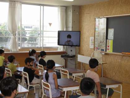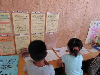 久々に登校した子供たちは、とても元気な様子で、夏休みにあった話をしたり自由研究を見合ったりしていました。