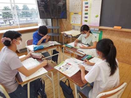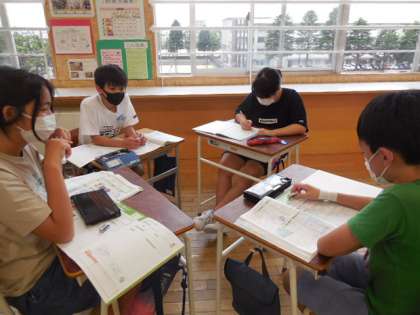 5年生のときのナップザックの製作過程を思い起こし、良かった点や改善点等を友達と交流しました。布製のよさを感じながら、今学期はエプロンの製作を行います。