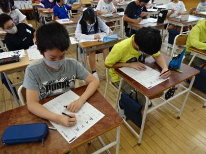 書写の学習で、いろいろな筆記用具を目的に合わせて使い分ける学習をしました。初めて筆ペンに挑戦し、めあてを書いたり、書写の学習プリントを使って練習をしたりしました。筆ペンの独特の書き心地を楽しみながら味わっていました。