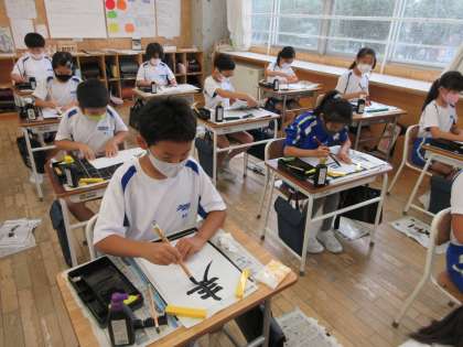 左はらいが二つ並ぶときの字のバランスに気を付けながら集中して書いていました。