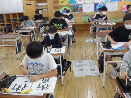 3つの部分のバランスに気を付けながら、「街角」の練習をしました。2学期最初の書写の学習で、一角一角丁寧に書きました。