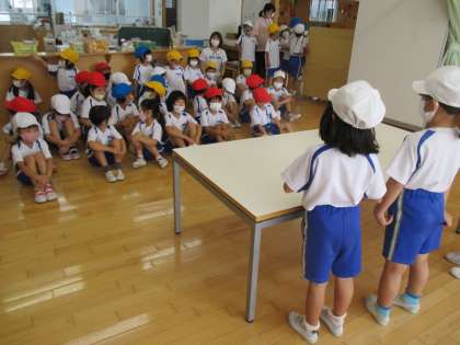 音楽係がイントロ部分を歌うクイズイベントを開きました。参加した子供たちは、歌声に耳をすませて聞いていました。「次のイベントも楽しみ!」という声が聞かれました。