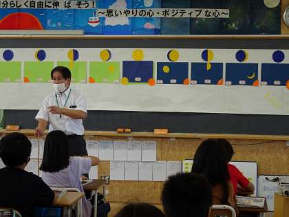 理科の学習では、月の見え方がどう変わっていくのか、ボールを使って確かめました。体験活動を通して、徐々に変化していく様に気付いた子供たちでした。