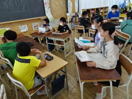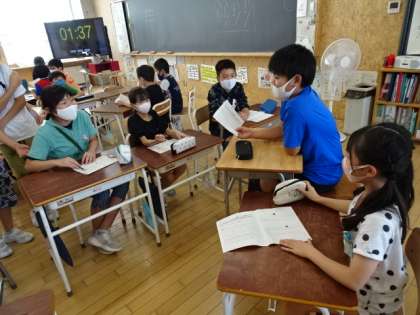 国語科で、二つの立場に分かれ話し合い、考えを説明して、どちらの考え方に説得力があるかを考える学習を行いました。