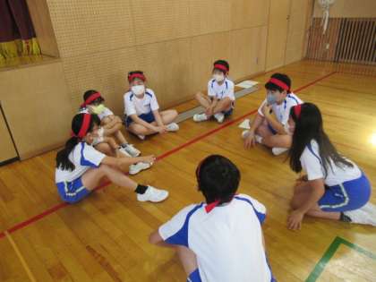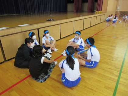 6年生全体の応援練習がスタートし、実際に前に出て活動を進めました。活動後の振り返りもしっかりと行い、次の活動に向けて課題を見付けました。