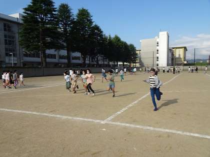 校内チャレンジ陸上記録会を月末に控え、本格的な朝の練習がスタートしました。グラウンドを走ったり、幅跳び・ボール投げの練習をしたりしています。