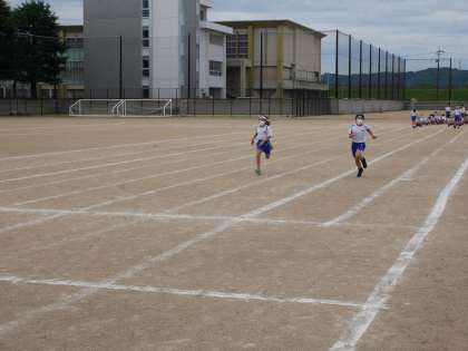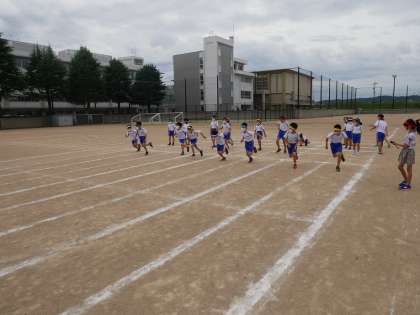体育では運動会に向けて走る運動にも取り組んでいます。今日は50m走のタイムを計りました。1学期に比べタイムが伸びた子供、あまり変わらなかった子供、タイムが落ちた子供様々でしたが、朝のトレーニングにも進んで取り組もうと、意欲を高める子供たちです。