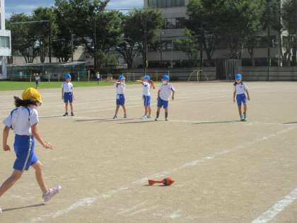 体育では、ボールを投げる練習をしました。狙ったところにとばすために、体の向きやボールを持たない手の動きを何度も確認して練習しました。