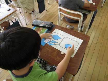 算数科の学習では、「三角形と四角形をしらべよう」という学習を行っています。