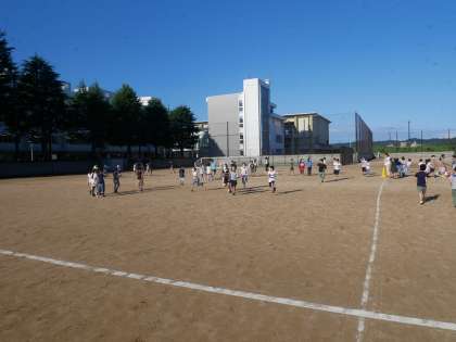 週に2〜3回の朝トレに取り組んでいます。青空の下、子供たちはグラウンドに出て一生懸命走っています。運動会が来月に迫り、スタートを意識しながら走る子供たちです。