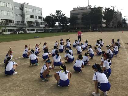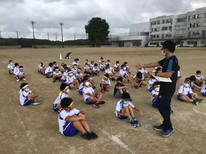 運動会結団式が行われ、運動会の練習が本格的に始まっていきます。三年生でも各クラス各団のリーダーを決め気合いが入っています。今回は80m走の順番に並び実際に走ってみました。走るメンバーが分かり、負けないぞという気持ちがひしひし伝わってくる子供たちです。