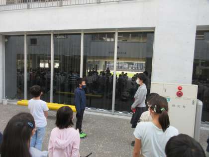 みんな元気に芝園小学校に帰ってきました。帰校式の様子です。