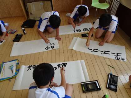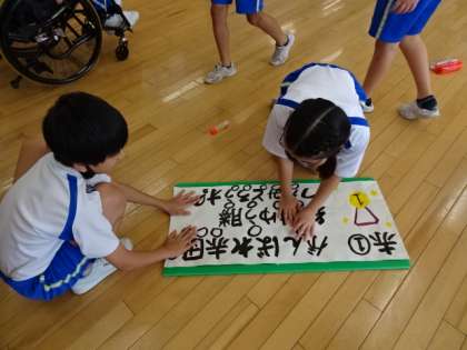 5年生は、運動会の競技中の応援を任されています。リーダーが中心となってリズムや言葉を考えています。みんなに分かりやすいように大きなボードをつくりました。明日はいよいよ、学年で練習をします。