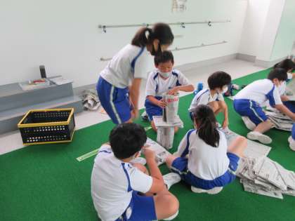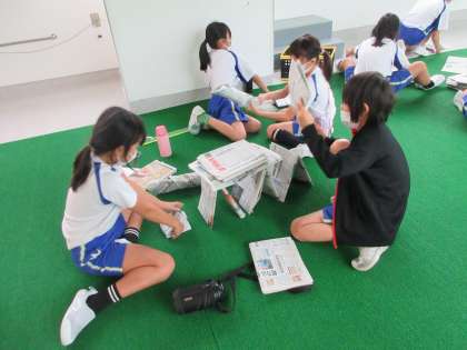 [新聞タワー100をする子供たちの様子]