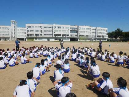 4年生と一緒に入退場などの練習をしました。4年生の姿を見て学ぶ子供たちです。