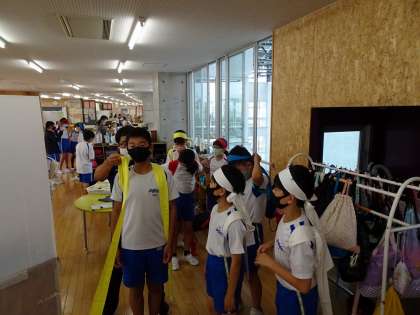 休み時間には、応援合戦で着用する長はちまきとたすきがけの練習をしました。四役特別ということもあり、子供たちはさらにモチベーションを高めていました。
