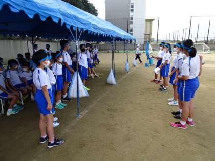 運動会が終わり、6年生の団役員さんの思いを受け止め、5年生からも、6年生の思いを受け継いでいくという決意表明を5年生の団リーダーがしました。6年生のすごいと思ったところや、一緒にがんばったこと、そしてその思いを受け継いでいきたいという思いを伝えました。その後は、5年生の大切な役目である後片付けもしました。自分から仕事を見付けて進んで働きました。