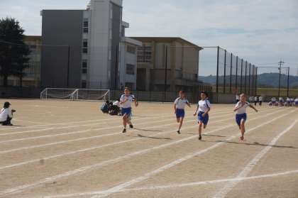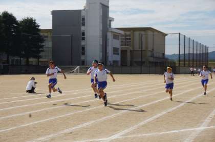 競技の様子です。まずは、100m走。一位になる、という気持ちで、それぞれが全力で走りました。