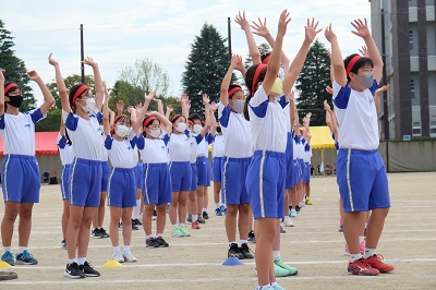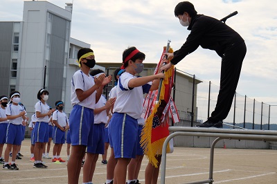 晴天の中、無事に運動会が終了しました。閉会式では、成績発表ののち授賞式が行われました。勝った団も負けた団も、最後はすがすがしい顔でした。