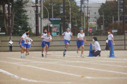 最後の競技、リレーの様子です。最後まで勝敗は分からず、大変盛り上がりました。