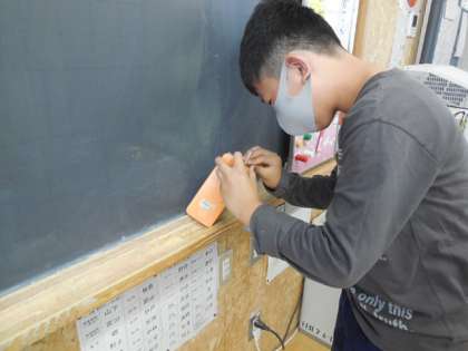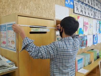 身近にある物の長さを測り、およその体積を求めました。黒板消しやゴミ箱、プロジェクター等、様々なものについて調べていました。