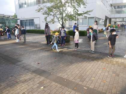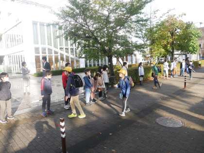 学級の代表2人がけやき通りに立ち、計画委員と一緒にあいさつ運動に参加しました。元気なあいさつを通りかかる人々にたくさんしていました。